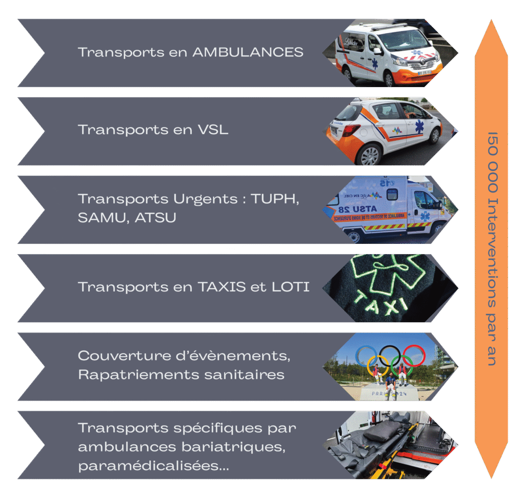 Les équipages en Ambulance sont des professionnels de santé qualifiés et expérimentés. Nos ambulanciers sont tous diplômés DEA (Diplôme d’Etat d’Ambulanciers) ou Auxiliaires Ambulanciers (AA) et ont l’AFGSU2 (renouvelé́ tous les 4 ans). Ils bénéficient d’une formation continue aux nouvelles technologies.